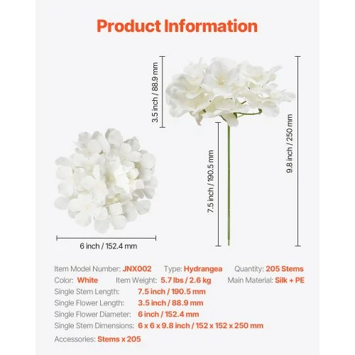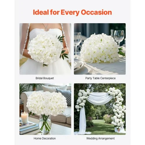 VEVOR 205 Τεμάχια Τεχνητά Μεταξωτά Λουλούδια Ορτανσίας 9.8 Ίντσες Μπουκέτο Διάταξη Λευκό