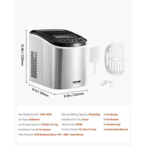 Φορητή Παγομηχανή Πάγκου VEVOR 33Lbs/24H