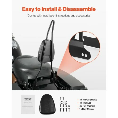 VEVOR Πλάτη Στήριξης Μοτοσυκλέτας για Harley-Davidson Dana