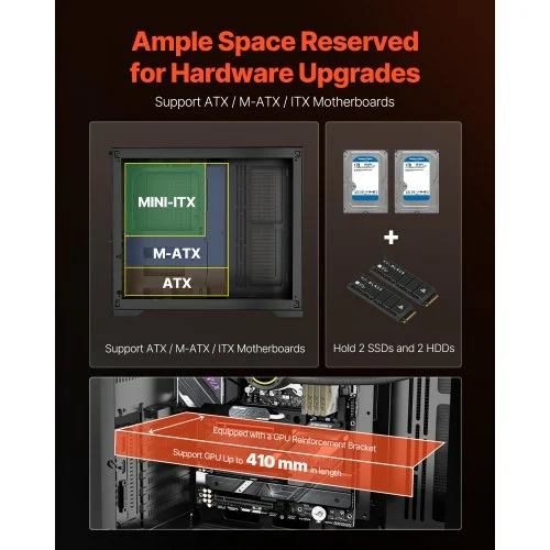 - Συμβατότητα με Υψηλής Απόδοσης GPU: Υποστηρίζει κάρτες γραφικών έως 410 mm.