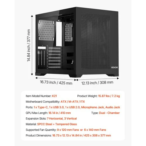 Ανακαλύψτε την απόλυτη θήκη υπολογιστή για τους λάτρεις του gaming! Η VEVOR Mid-Tower ATX PC Case προσφέρει: