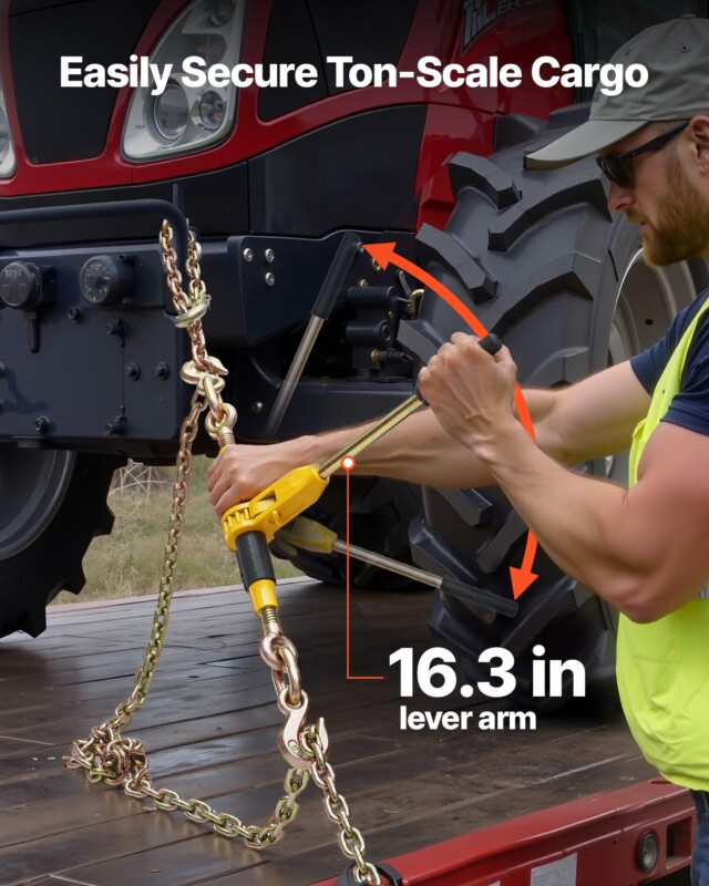 Συμβατότητα & Προσαρμοστικότητα: Ο δεσμευτικός φορτωτής περιλαμβάνει αλυσίδα 20 ft G80 (διάμετρος 3/8-ίντσας) και υποστηρίζει αλυσίδες 3/8-ίντσας έως 1/2-ίντσας. Η ρυθμιζόμενη απόσταση γάντζου (23.2-30.7 ίντσες) ταιριάζει σε φορτηγά, γερανούς και pick-ups, ιδανική για την ασφαλή μεταφορά ξύλων, εξοπλισμού και περισσότερων.