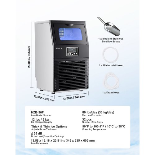 Η επαγγελματική παγομηχανή παράγει 32 κομμάτια ανά κύκλο και έως 80 λίβρες πάγου ημερησίως, με αποθήκευση 12 λίβρες πάγου. Ιδανική για οικιακή, μπαρ ή ελαφριά επαγγελματική χρήση. Πιστοποιημένη με ETL και ENERGY STAR για ασφαλή και αποδοτική λειτουργία.