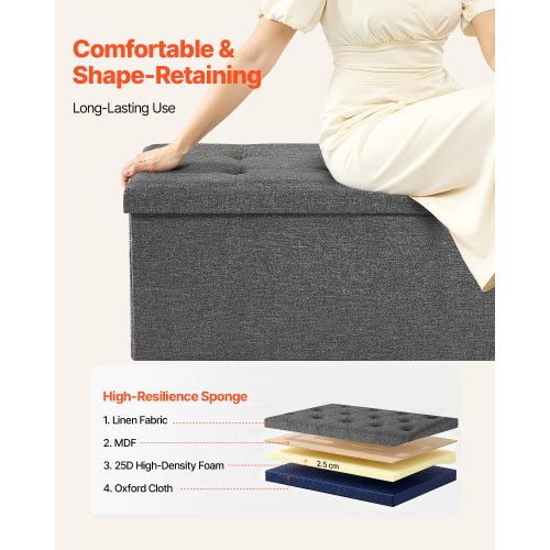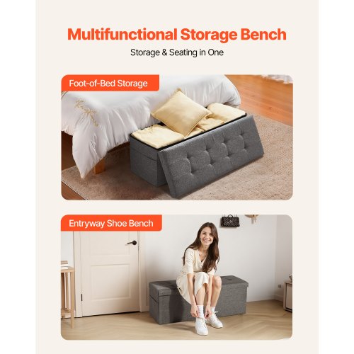 VEVOR Πτυσσόμενο Σκαμπό-Παγκάκι Αποθήκευσης με Πλαινές Θήκες, Υφασμάτινο Μπαούλο 660 lbs, Μεγάλος Αποθηκευτικός Χώρος, Γκρι BYWSZYKZDK40FW7EP001V0