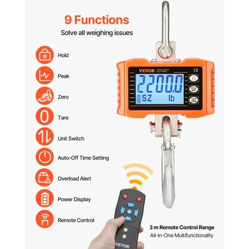 Η VEVOR Ψηφιακή Ζυγαριά Γερανού προσφέρει ακριβή ζύγιση για βαριά φορτία έως 2200 lbs/1000 kg.