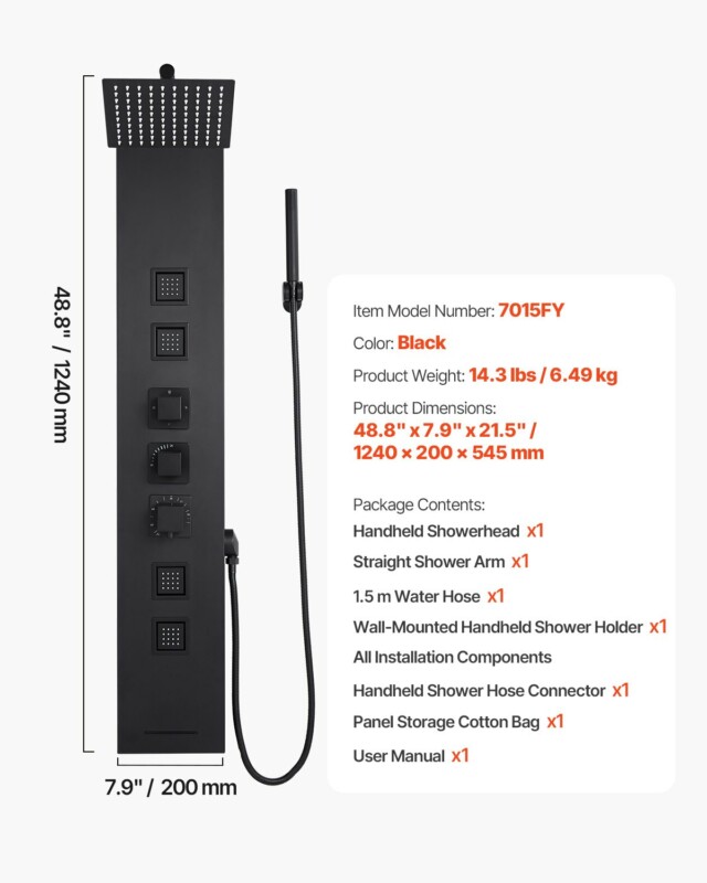 Το VEVOR Shower Panel μετατρέπει το καθημερινό σας ντους σε εμπειρία spa. Είναι ιδανικό για όσους αναζητούν χαλάρωση, ενδυνάμωση ή απλώς ένα άγγιγμα πολυτέλειας στον προσωπικό τους χώρο. Ιδανικό για νέα μπάνια, ανακαινίσεις ή αναβαθμίσεις χωρίς κόστος μετατροπής των υδραυλικών εγκαταστάσεων.