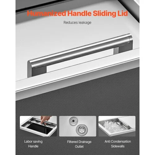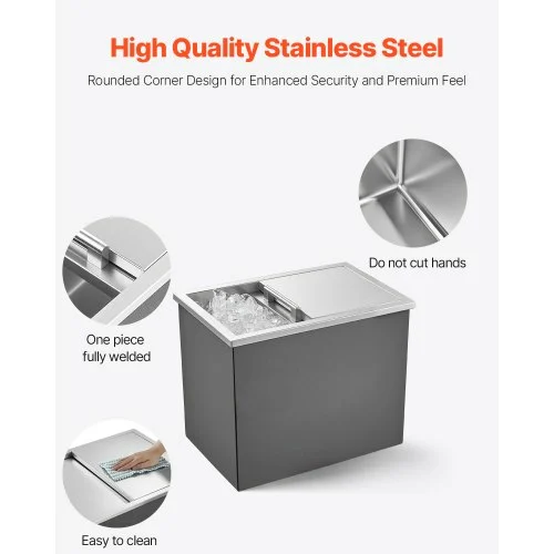Ανακαλύψτε την απόλυτη λύση για τη διατήρηση των ποτών σας δροσερών με το VEVOR 27.1L Ενσωματωμένο Ψυγείο Πάγου. Κατασκευασμένο από ανοξείδωτο ατσάλι SUS201, αυτό το ψυγείο συνδυάζει ανθεκτικότητα και κομψότητα.