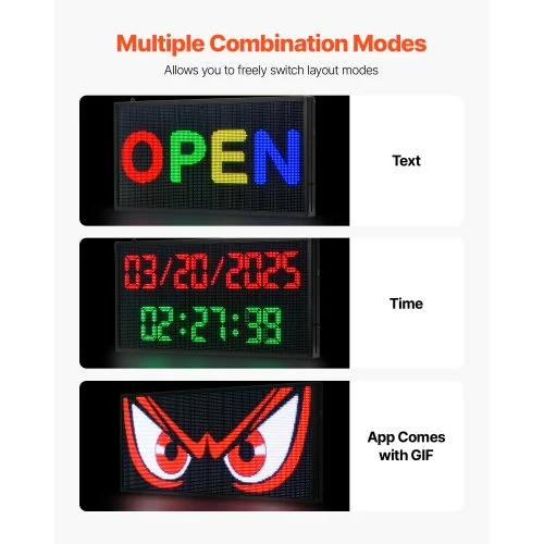 VEVOR Προγραμματιζόμενη LED Πινακίδα 27x14in P5 Πλήρους Χρώματος YPGDGGP27X14UGXN8001V2