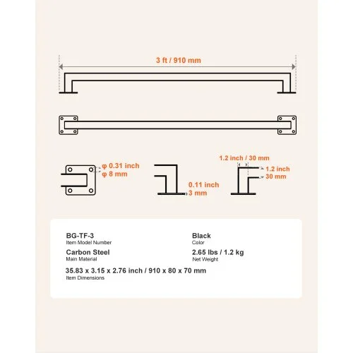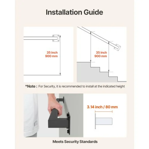 VEVOR Σιδερένια Μαύρη Κουπαστή Σκάλας 915mm Τοίχου BGSTZFGFS3FTNONYF001V0