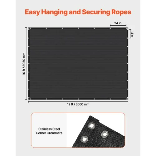 VEVOR 90% Σκίαστρο Ιδιωτικότητας 10 x 12 ft για Βεράντα & Κήπο (Μαύρο)