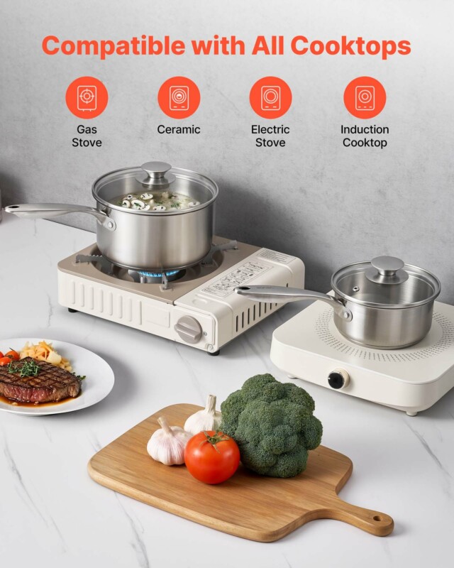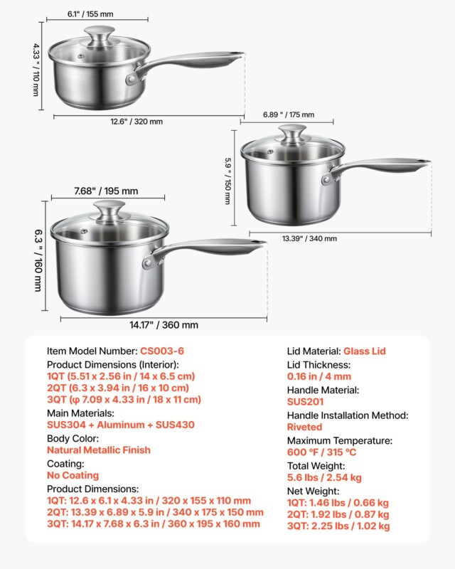 VEVOR Σετ Κατσαρολών Ανοξείδωτου Χάλυβα 3 Τεμαχίων (1QT, 2QT, 3QT) – Πολυλειτουργικές, Φούρνου & Πλυντηρίου πιάτων Ασφαλείς BXGJG123QT3JB8H68001V0