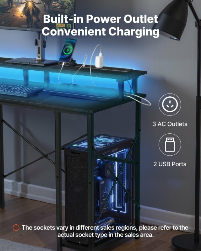 Γραφείο Υπολογιστή VEVOR με Έξυπνα Φωτιστικά LED και Πρίζες