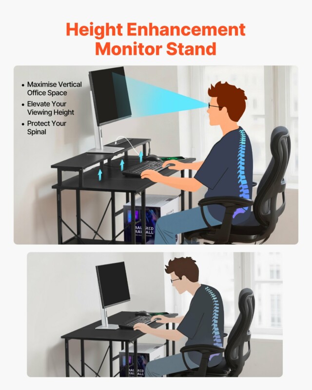 Η βάση οθόνης προάγει τη σωστή στάση και βοηθά στη διατήρηση υγιούς λαιμού στο σπίτι. Είναι εξαιρετικό για μάθηση, γραφειακές εργασίες, και παιχνίδια, και μπορεί επίσης να λειτουργήσει ως τραπέζι μελέτης.