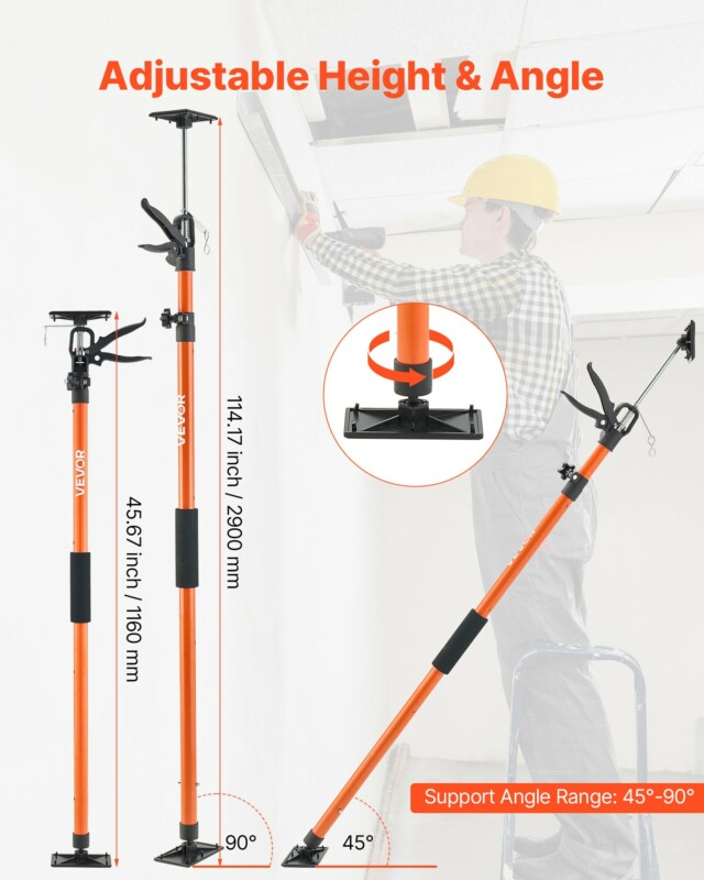 VEVOR Γρύλος Στήριξης Ντουλαπιών, Συσκευασία 2, 116-290 εκ. Τηλεσκοπική Ράβδος Στήριξης από Χάλυβα, Ρυθμιζόμενο Σύστημα 3ου Χεριού έως 70 kg Ικανότητα για Εγκατάσταση Ντουλαπιών, Ανύψωση Γυψοσανίδας, Μπάρες Φορτηγών