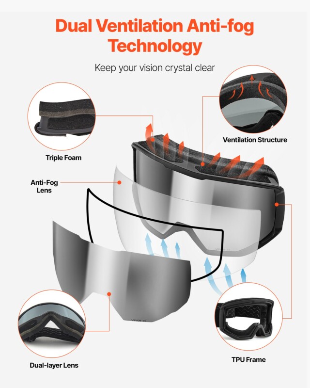 VEVOR Γυαλιά Σκι Αντιθαμβωτικά, Κυλινδρικός Φακός Revo Επικάλυψης, Μέγεθος 18 x 9.6 x 7.2 εκ. HXJYKHSBDCXJCK3TG001V0