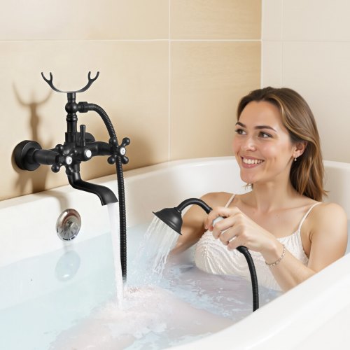 Αυτή η βρύση μπανιέρας με φορητό ντους υποστηρίζει εγκατάσταση τοίχου και μπανιέρας, διαθέτοντας αρσενικό σπείρωμα τύπου G 1/2″ και ρυθμιζόμενους βραχίονες που παρέχουν αποστάσεις κέντρας οπών εγκατάστασης 5.5–6.7 ίντσες (140-170 mm). Περιλαμβάνει επίσης ταινία σφράγισης για να ενισχύσει την στεγανότητα και να αποτρέψει τις διαρροές.