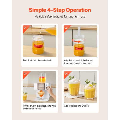 Αυτή η μηχανή παραγωγής χιονιού λειτουργεί με ένα απλό κουμπί για ρύθμιση ταχύτητας, επιτρέποντάς σας να ελέγχετε εύκολα την υφή του πάγου σας. Ο διαισθητικός σχεδιασμός της την καθιστά απλή στη χρήση.