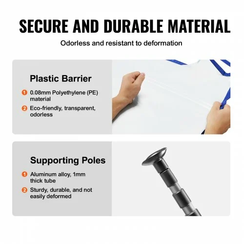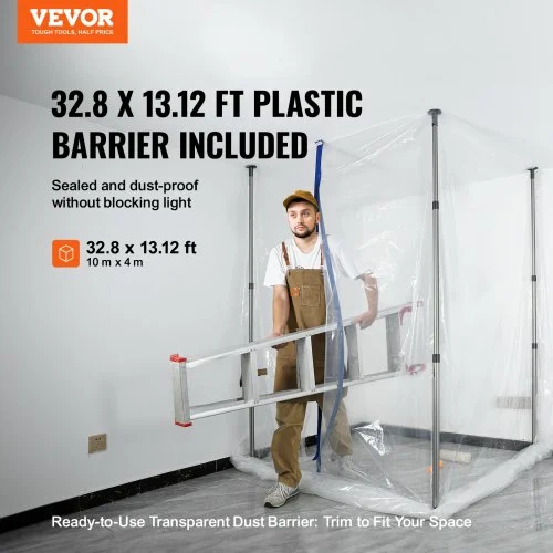 Ανακαλύψτε το σύστημα φραγμού σκόνης VEVOR με 4 τηλεσκοπικούς στύλους, μαγνητικό φερμουάρ και τσάντα μεταφοράς. Ιδανικό για εσωτερική διακόσμηση και βαφή.