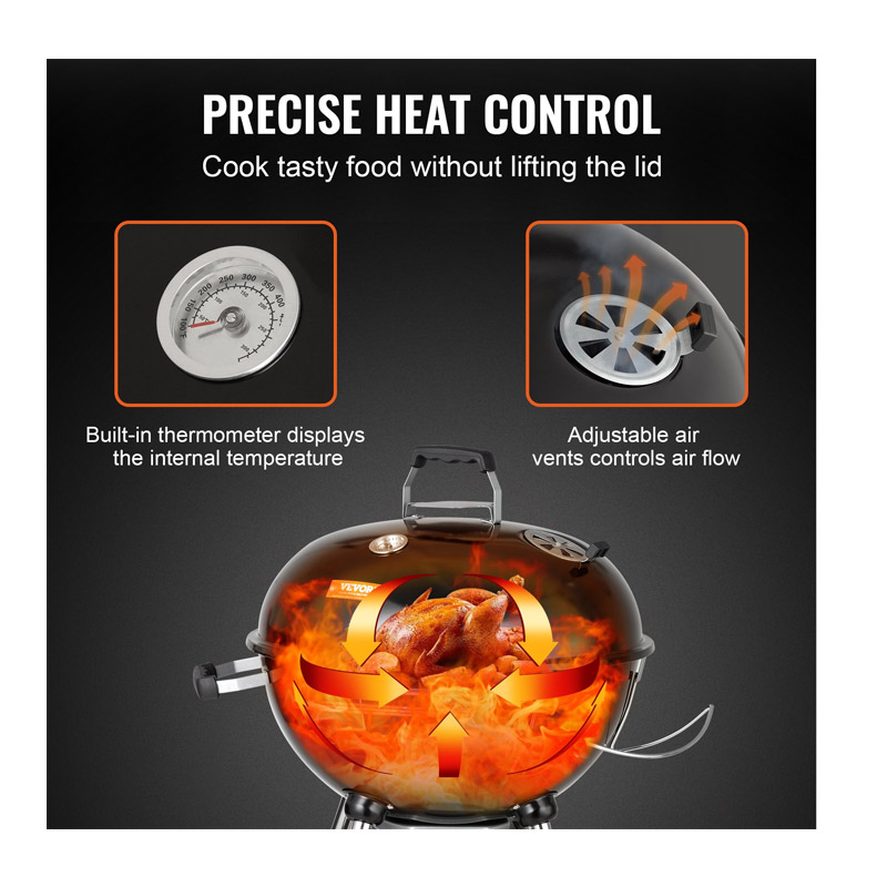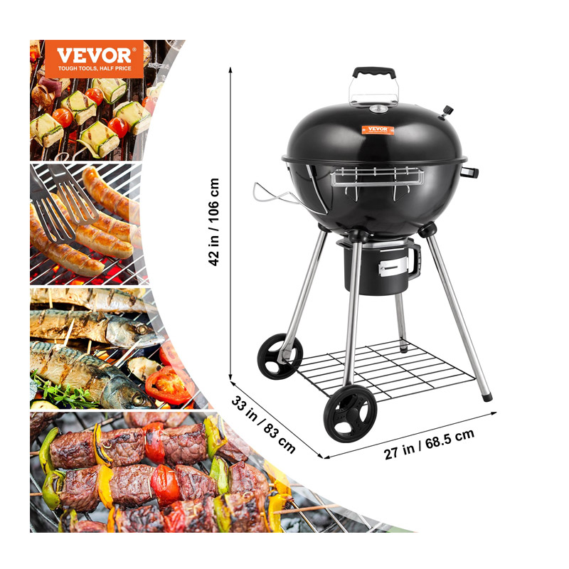 Η ψησταριά – μπάρμπεκιου, από την εταιρία VEVOR, έχει σχεδιαστεί για εξωτερική χρήση. Ιδανικό για κάμπινγκ, πικνίκ, πάρτι, παραλίες και πολλά άλλα μέρη. Διατηρεί την αρχική γεύση των κρεάτων σας, δίνοντάς σας την υπέροχη καπνιστή και ψητή γεύση που λαχταράτε. Διαθέτει μεγάλη σχάρα 56 x 56 cm που χωράει έως και 13 μπιφτέκια. Το καπάκι και το μπολ φωτιάς είναι κατασκευασμένα από σμάλτο πορσελάνης που διατηρεί τη θερμότητα, δεν σκουριάζει και ξεφλουδίζει εύκολα.