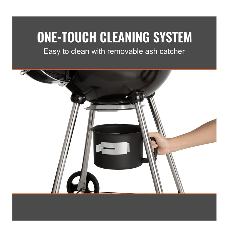 Με έναν αφαιρούμενο συλλέκτη στάχτης, μπορείτε να απολαύσετε σύστημα καθαρισμού με ένα άγγιγμα, το οποίο παρέχει απρόσκοπτο καθαρισμό της τέφρας και των υπολειμμάτων από κάρβουνο. Μπορείτε εύκολα να ρυθμίσετε τις βαλβίδες για να ελέγχετε τη ροή αέρα της ψησταριάς, ρυθμίζοντας έτσι τη θερμοκρασία μαγειρέματος. Επιπλέον, το ενσωματωμένο θερμόμετρο σας βοηθά να παρακολουθείτε την εσωτερική θερμοκρασία χωρίς να σηκώνετε το καπάκι.