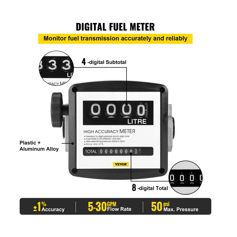 Η αντλία μεταφοράς καυσίμου μπορεί να παρακολουθεί τη μετάδοση του καυσίμου με ακρίβεια και αξιοπιστία. Υπάρχουν δύο είδη ενδείξεων σε αυτό, 4-ψηφιακό υποσύνολο και 8-ψηφίο σύνολο.