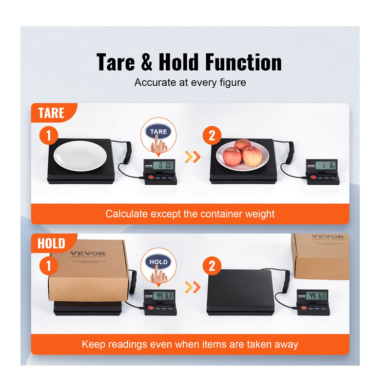 Η ψηφιακή ζυγαριά, από την εταιρία VEVOR, μπορεί να χρησιμοποιηθεί σε διαφορετικά περιβάλλοντα, όπως βιομηχανίες, εταιρείες ταχυμεταφορών, αγορές, ακόμη και στο σπίτι. Είναι κατασκευασμένη με ανθεκτικό πλαστικό ABS, ώστε να μην παραμορφώνεται ή να σκουριάζει. Έχει μεγάλο εύρος ζύγισης από 10 g έως 50 Kg με εντυπωσιακή ακρίβεια μόλις 2 g.