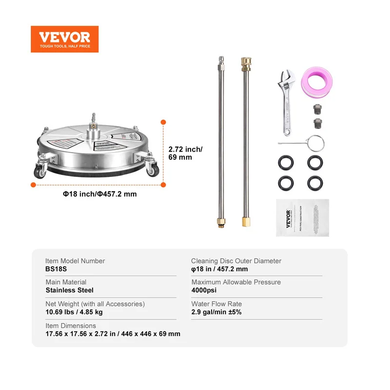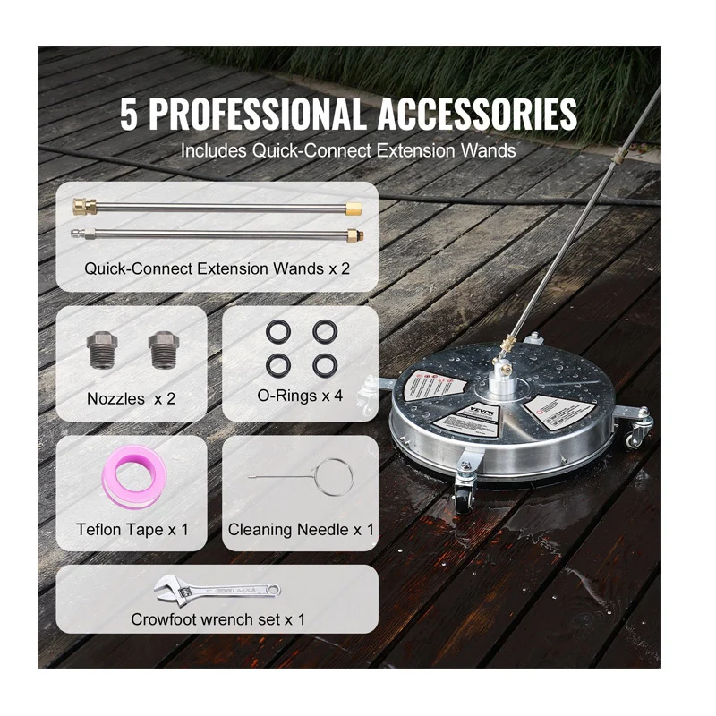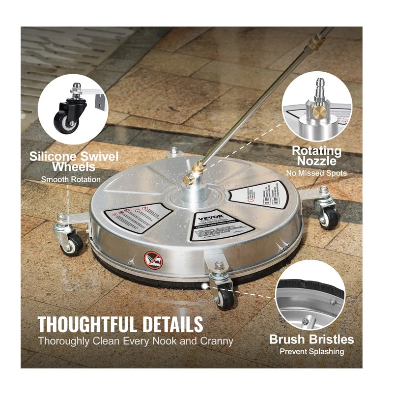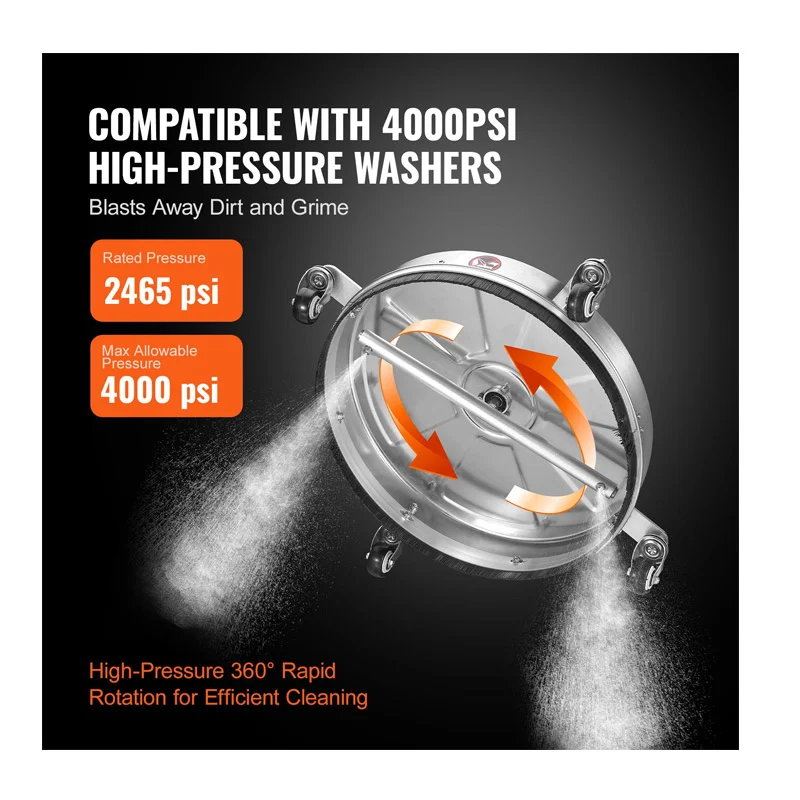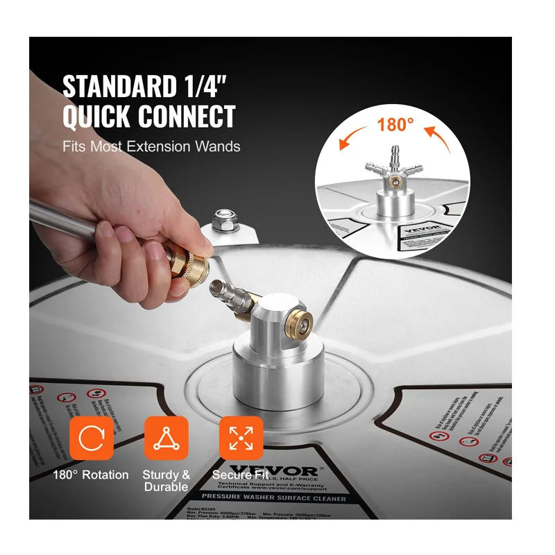 Το καθαριστικό μηχάνημα επιφάνειας, από την εταιρία VEVOR, έχει μέγιστη πίεση νερού έως 4000 PSI και διαθέτει τεχνολογία καθαρισμού ταχείας περιστροφής διπλού ακροφυσίου 360° στο κάτω μέρος, εξαλείφοντας γρήγορα τη λάσπη και τη βρωμιά. Με υψηλή ταχύτητα ροής 10.9 Lt/min, εξασφαλίζει ομοιόμορφο καθαρισμό. Είτε πρόκειται για εργασία μεγάλης κλίμακας είτε για καθημερινό καθαρισμό, το καθαριστικό μηχάνημα μπορεί να το χειριστεί με ευκολία. Απολαύστε αποτελεσματικό καθαρισμό που εξοικονομεί χρόνο και προσπάθεια.