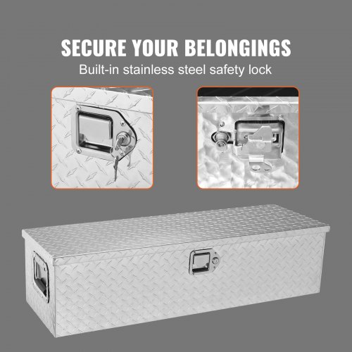 Ανακαλύψτε το VEVOR Βαρέως Τύπου Αλουμινένιο Κουτί Εργαλείων, ιδανικό για την καρότσα του φορτηγού σας, το RV ή το τρέιλερ. Κατασκευασμένο από υψηλής ποιότητας αλουμίνιο με σχέδιο διαμαντιού, αυτό το κουτί εργαλείων προσφέρει ανθεκτικότητα και στυλ.