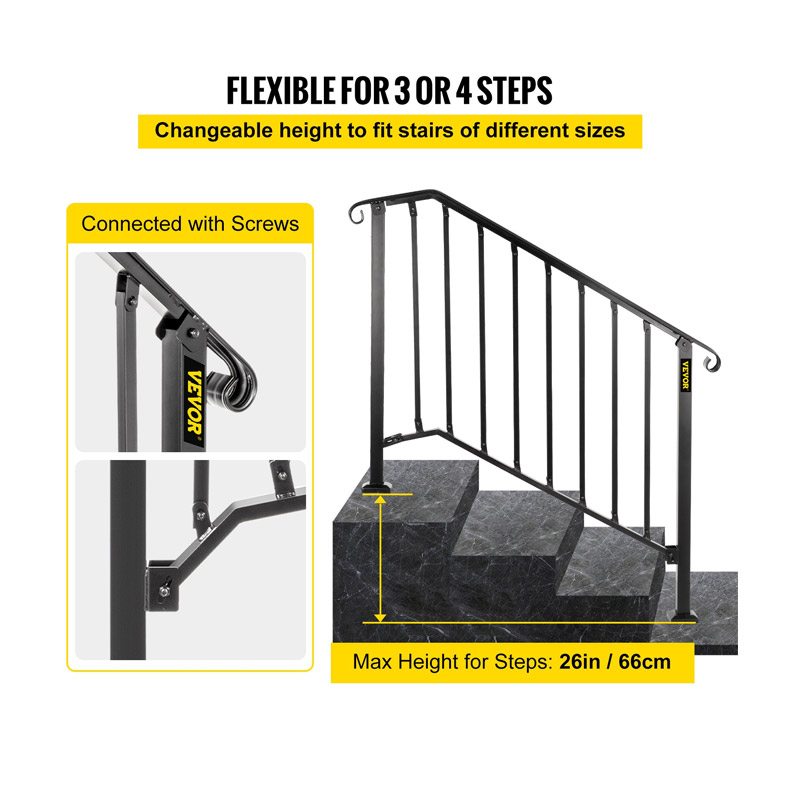 Σιδερένια Κάγκελα Σκάλας Εξωτερικού Χώρου για 3-4 Σκαλοπάτια 94 x 108.7 cm VEVOR LTFS3H4BHSTL00001V0
