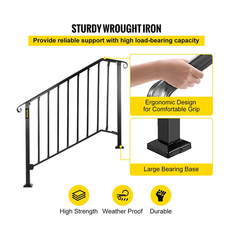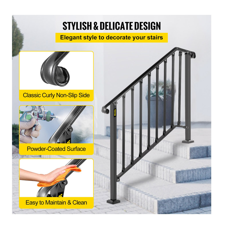 Τα κάγκελα σκάλας εξωτερικού χώρου, από την εταιρία VEVOR, είναι κατασκευασμένα από ανθεκτικό σφυρήλατο σίδερο με επιφάνεια βαφής πούδρας και παχιές συμπαγείς βάσεις. Η σταθερή και στιβαρή κατασκευή εξασφαλίζει εξαιρετική χωρητικότητα φόρτωσης για να παρέχει μια ασφαλή λαβή για την οικογένειά σας. Επιπλέον, ο εργονομικός σχεδιασμός υιοθετείται για να δημιουργήσει ένα άνετο κράτημα.