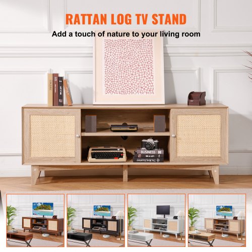 Ρατάν TV Σταντ 191cm Boho TV Ντουλάπι Δρυς – VEVOR TBDSJ66INCHEOANELV2