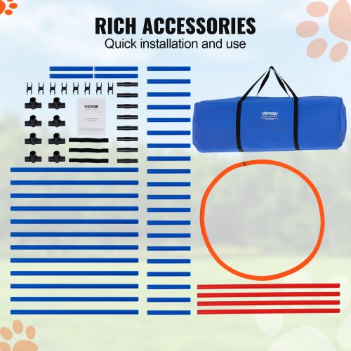 Αναβαθμίστε την εκπαίδευση του σκύλου σας με το σετ εξοπλισμού εκπαίδευσης VEVOR, το οποίο περιλαμβάνει εμπόδια και δακτύλιο άλματος. Ιδανικό για την ανάπτυξη της ευκινησίας και της φυσικής κατάστασης του κατοικίδιου σας.