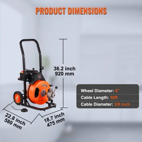 VEVOR Μηχανή Καθαρισμού Αποχετεύσεων Ηλεκτρική Αυγοειδής 50 FT x 3/8 In