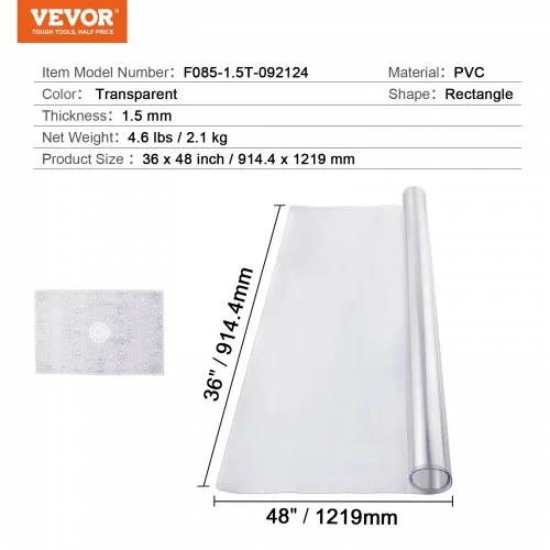 Διαφανές Προστατευτικό Τραπεζιού VEVOR 36×48 ιντσών 1.5mm ZFXPVCZB36X4AYOFYV0
