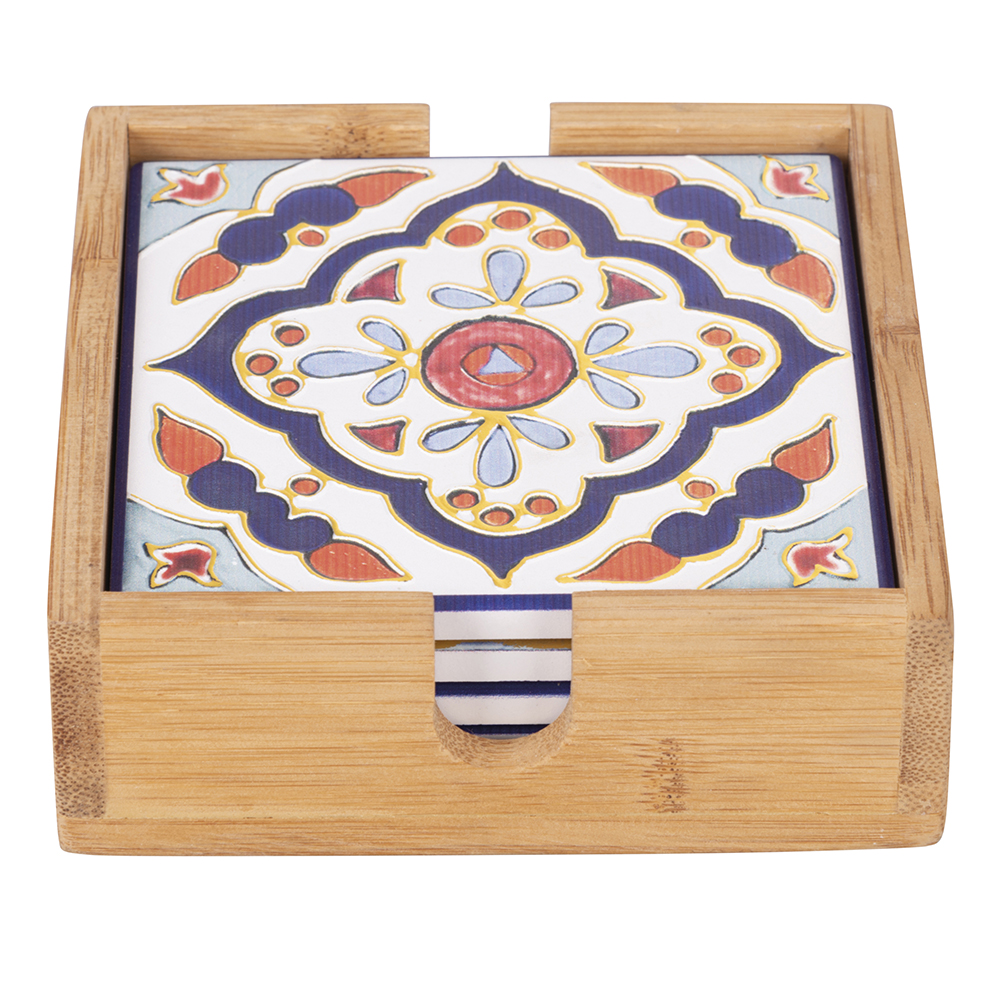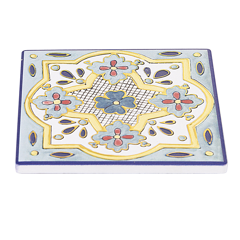 Villa d’Este Home Σετ 4 Διακοσμητικά Πλακάκια Κεραμικά 11×11 cm με Φελλό, Σχέδιο Γιουκατάν 5900664