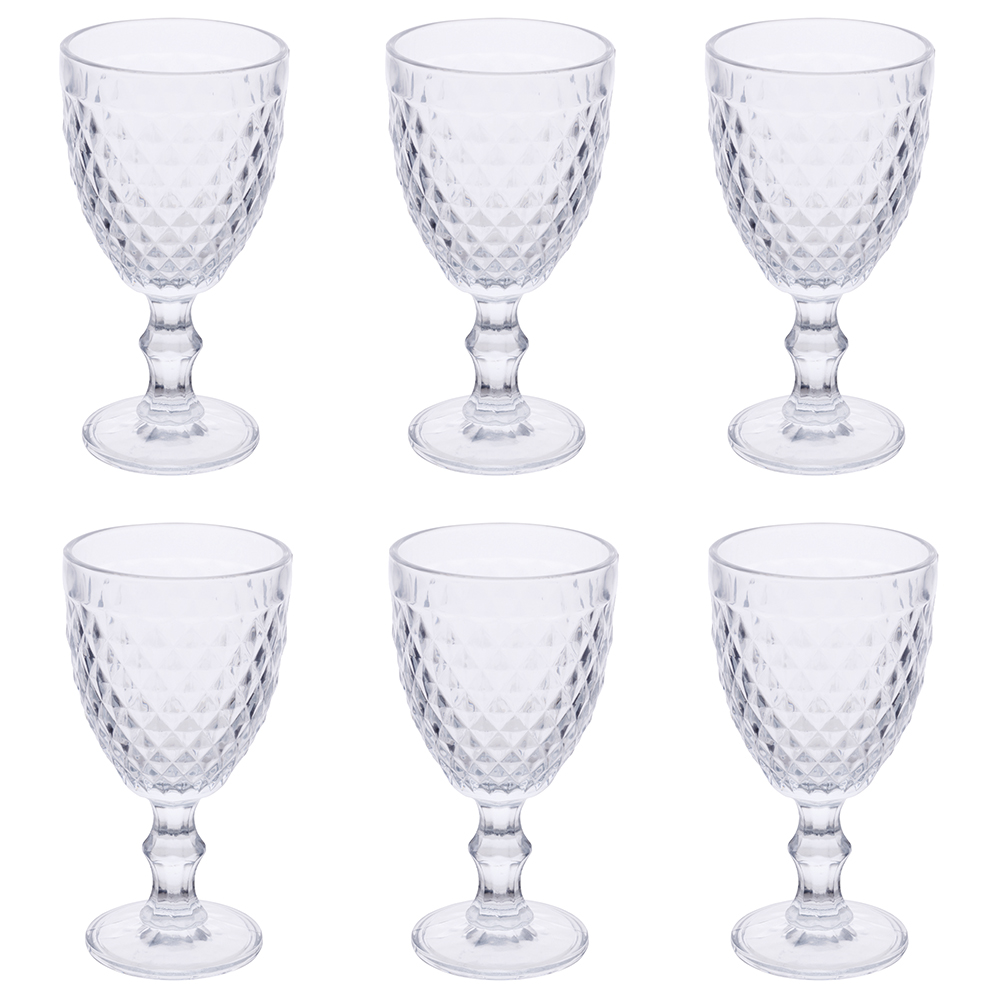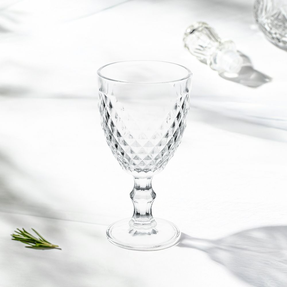 Villa d’Este Home Σετ 6 Ποτήρια Κρασιού 340 ml από Γυαλί με Ανάγλυφη Επιφάνεια Διαφανή Diamond Madame 5913498