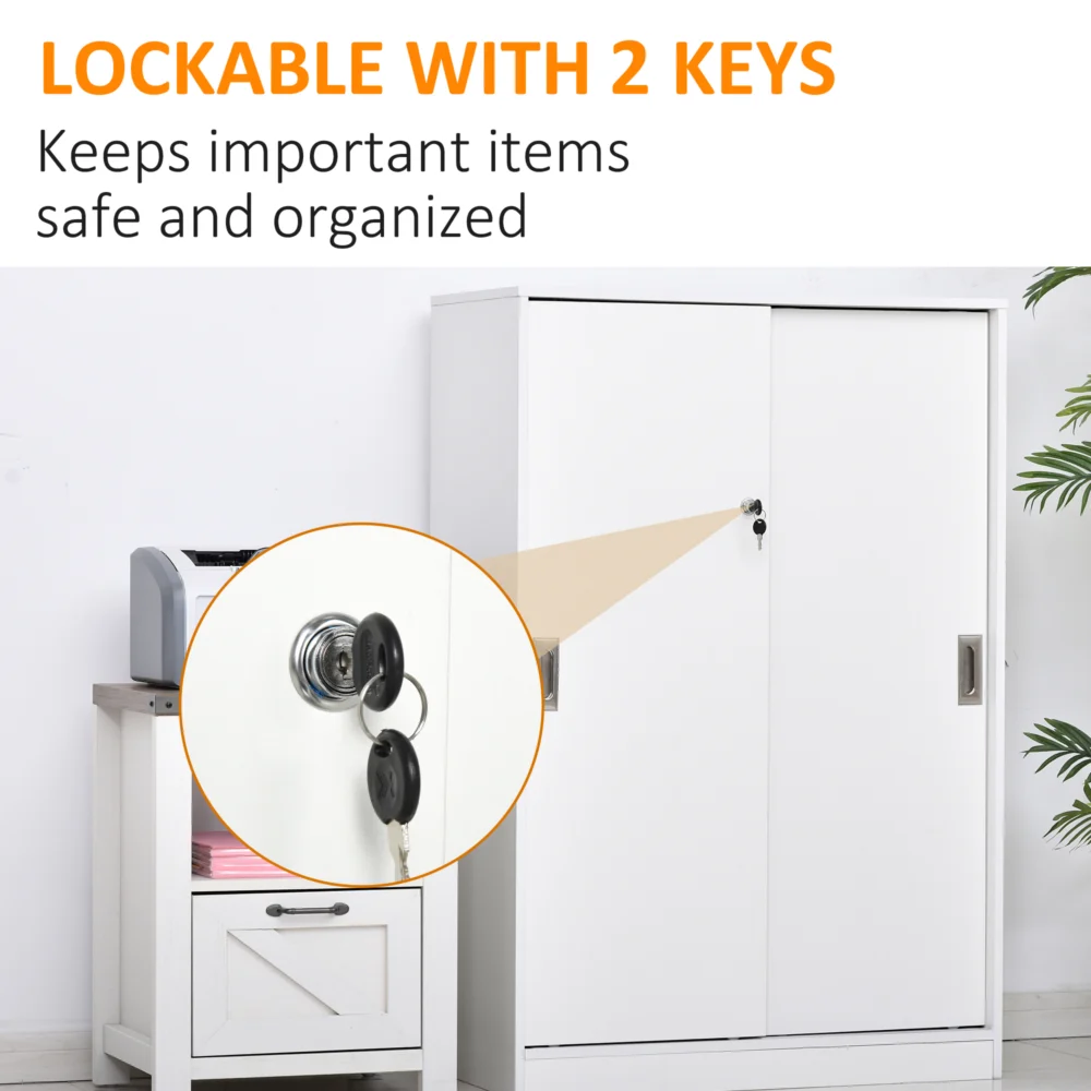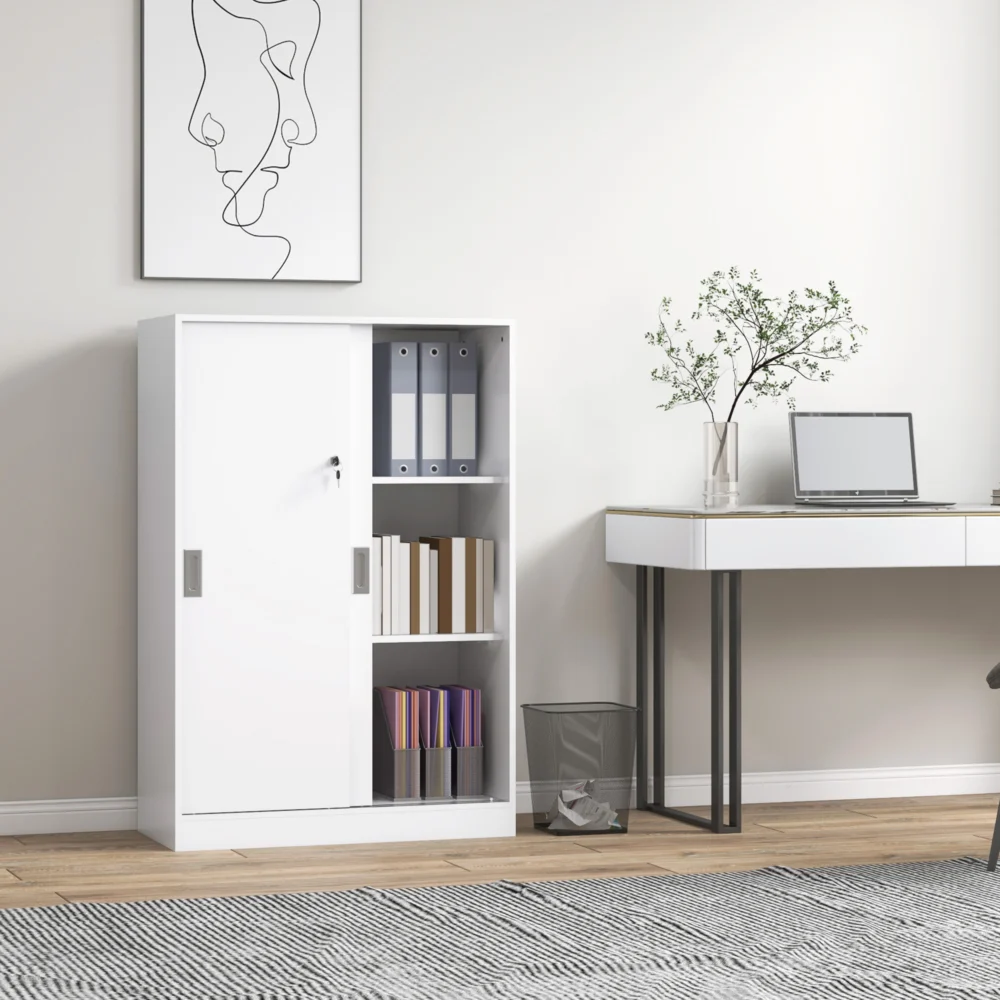 Με αυτό το ντουλάπι γραφείου Vinsetto με συρόμενες πόρτες και κλειδί, η διατήρηση της τάξης όλων των εγγράφων γραφείου θα είναι παιχνιδάκι. Τα 3 ράφια προσφέρουν άφθονο χώρο αποθήκευσης και οι συρόμενες πόρτες δεν καταλαμβάνουν χώρο όταν είναι ανοιχτές. Χρησιμοποιήστε το για να αρχειοθετήσετε έγγραφα ή για να αποθηκεύσετε υλικά γραφείου και μην διστάσετε να εκμεταλλευτείτε τις συρόμενες πόρτες και το κλειδί, γιατί θα είναι ένας ιδανικός σύμμαχος για να διατηρήσετε τον χώρο σε τάξη και να προστατεύσετε όλα τα αντικείμενα.