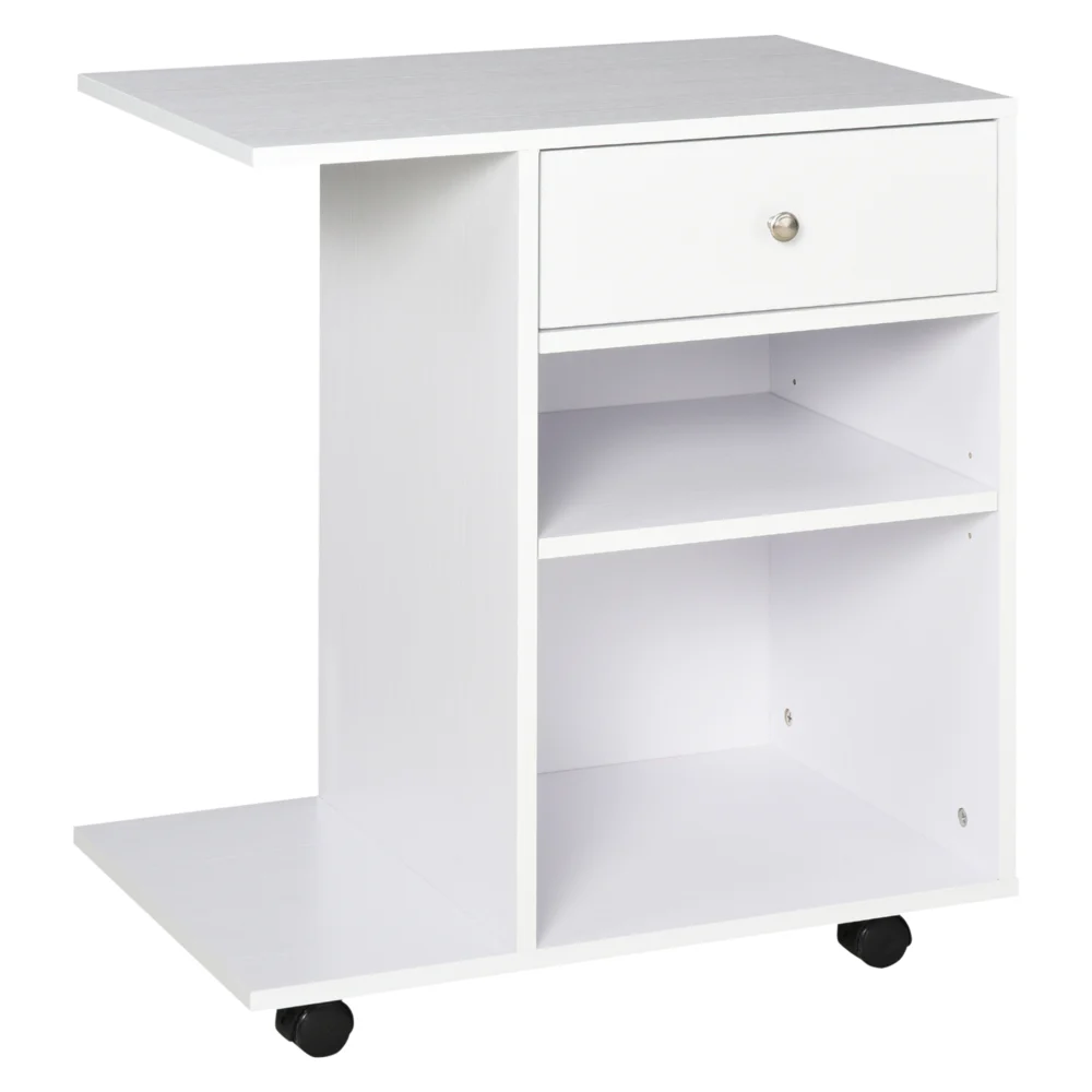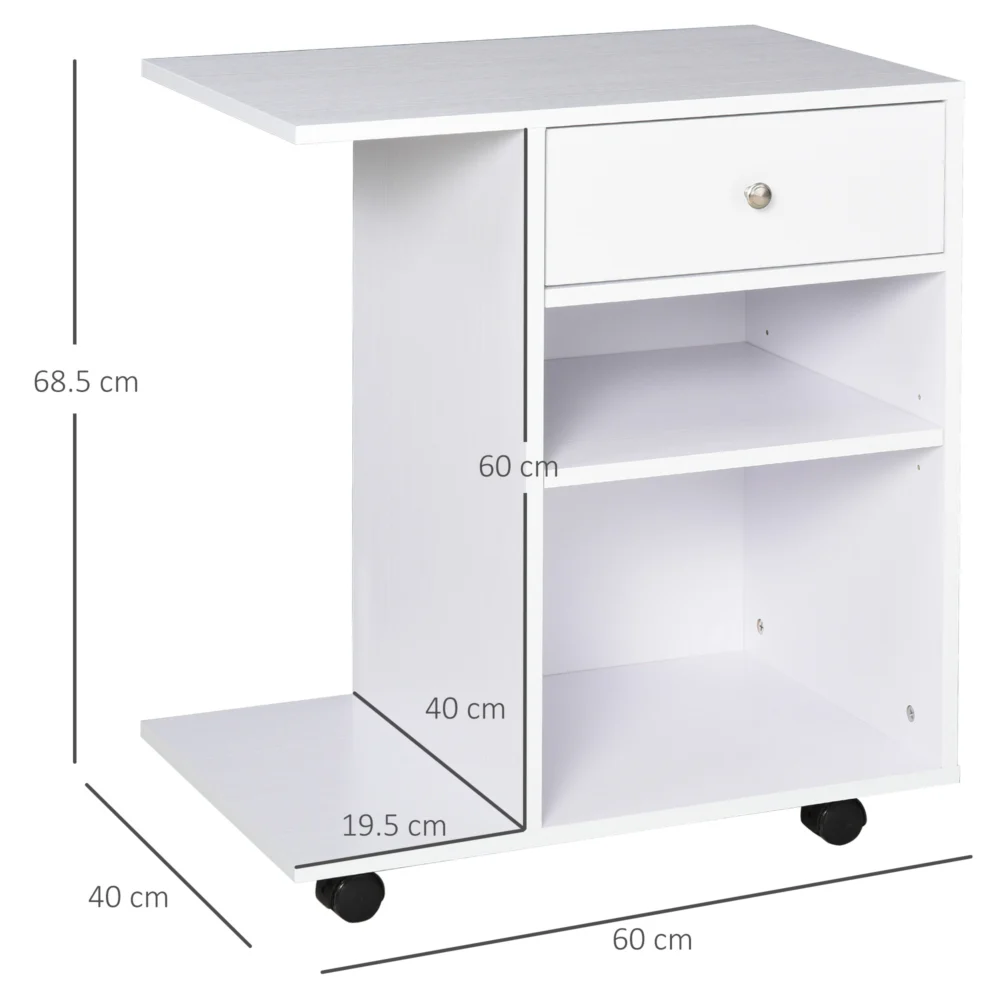 Ξύλινο ντουλάπι εκτυπωτή Vinsetto με 4 ρόδες, ρυθμιζόμενο ράφι και ράφι CPU, λευκό 920-069WT