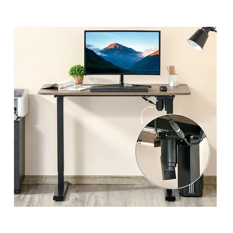 Το γραφείο, από την εταιρία Vinsetto, διαθέτει μεταλλικό σκελετό και μπορεί να αντέξει βάρος έως 70 Kg. Ο πάγκος εργασίας είναι κατασκευασμένος από νοβοπάν σε 2 πάνελ, προσφέροντας άφθονο χώρο. Είναι εξοπλισμένο με 4 προκαθορισμένα και ηλεκτρονικά ρυθμιζόμενα ύψη, απλά πατήστε το κουμπί (1.2.3.4) για 2 δευτερόλεπτα για να φτάσετε στο επίπεδο ύψους που προτιμάτε. Το γραφείο σταματά αυτόματα κατά την ανύψωση όταν συναντά εμπόδια για να αποφύγει χτυπήματα.