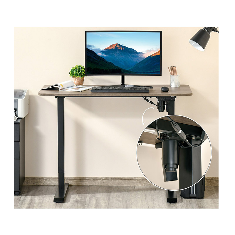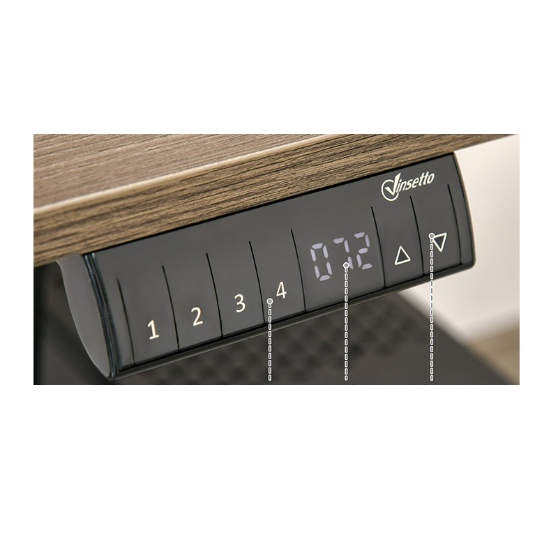 Το γραφείο, από την εταιρία Vinsetto, διαθέτει μεταλλικό σκελετό και μπορεί να αντέξει βάρος έως 70 Kg. Ο πάγκος εργασίας είναι κατασκευασμένος από νοβοπάν σε 2 πάνελ, προσφέροντας άφθονο χώρο. Είναι εξοπλισμένο με 4 προκαθορισμένα και ηλεκτρονικά ρυθμιζόμενα ύψη, απλά πατήστε το κουμπί (1.2.3.4) για 2 δευτερόλεπτα για να φτάσετε στο επίπεδο ύψους που προτιμάτε. Το γραφείο σταματά αυτόματα κατά την ανύψωση όταν συναντά εμπόδια για να αποφύγει χτυπήματα.