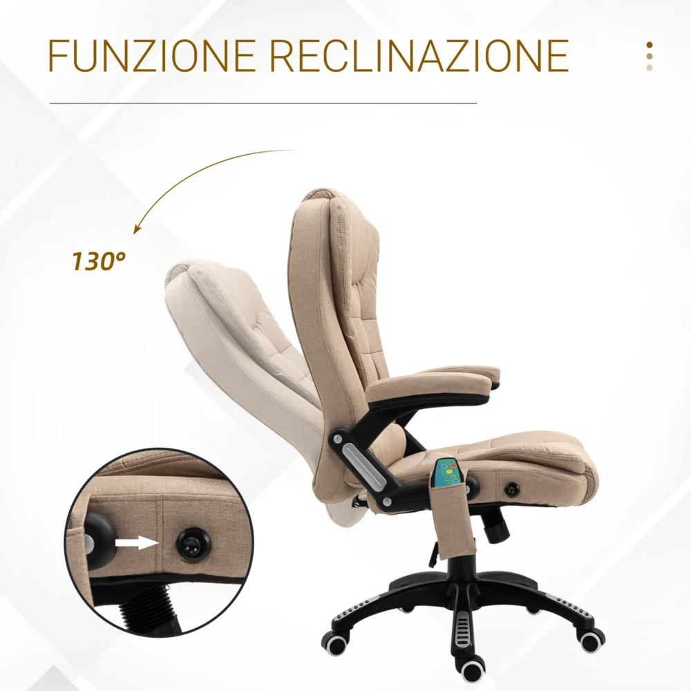 Καρέκλα μασάζ γραφείου και σπιτιού Vinsetto με 6 σημεία μασάζ και λειτουργία θέρμανσης και ρυθμιζόμενο ύψος, μπεζ 921-171V90BN