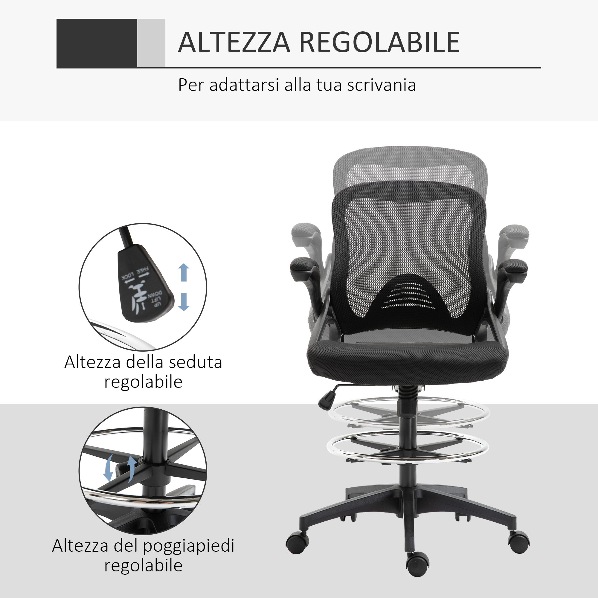 Vinsetto Αναπνεύσιμη Καρέκλα Γραφείου Ρυθμιζόμενου Ύψους με Αναδιπλούμενα Μπράτσα 64x60x106-126 cm Μαύρη 921-190