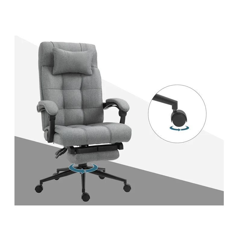 Η καρέκλα γραφείου, από την εταιρία Vinsetto, παρέχει τη μέγιστη άνεση σε όσους περνάνε πολλές ώρες στο γραφείο. Διαθέτει κάθισμα και πλάτη με επιφάνεια από λινό ύφασμα, ανθεκτικό και εύκολο στον καθαρισμό και γέμιση με αφρώδες καουτσούκ. Το κάθισμα μπορεί να ρυθμιστεί σε ύψος μεταξύ 47.5-55.5 cm ανάλογα με ύψος σας και το μέγεθος του γραφείου.