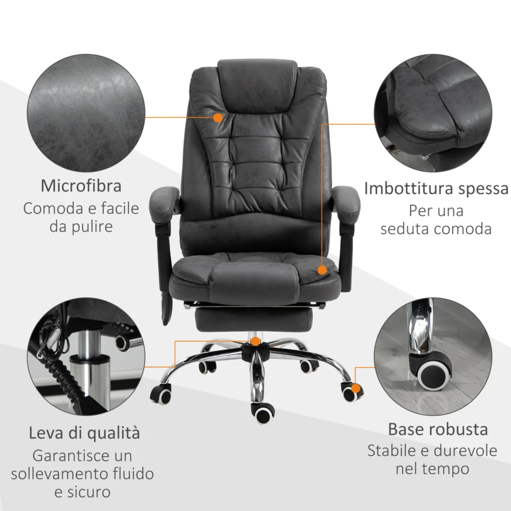 Vinsetto πολυθρόνα γραφείου για μασάζ και ανάκλιση με θέρμανση και ρυθμιζόμενο ύψος, γκρι 921-318V93BU