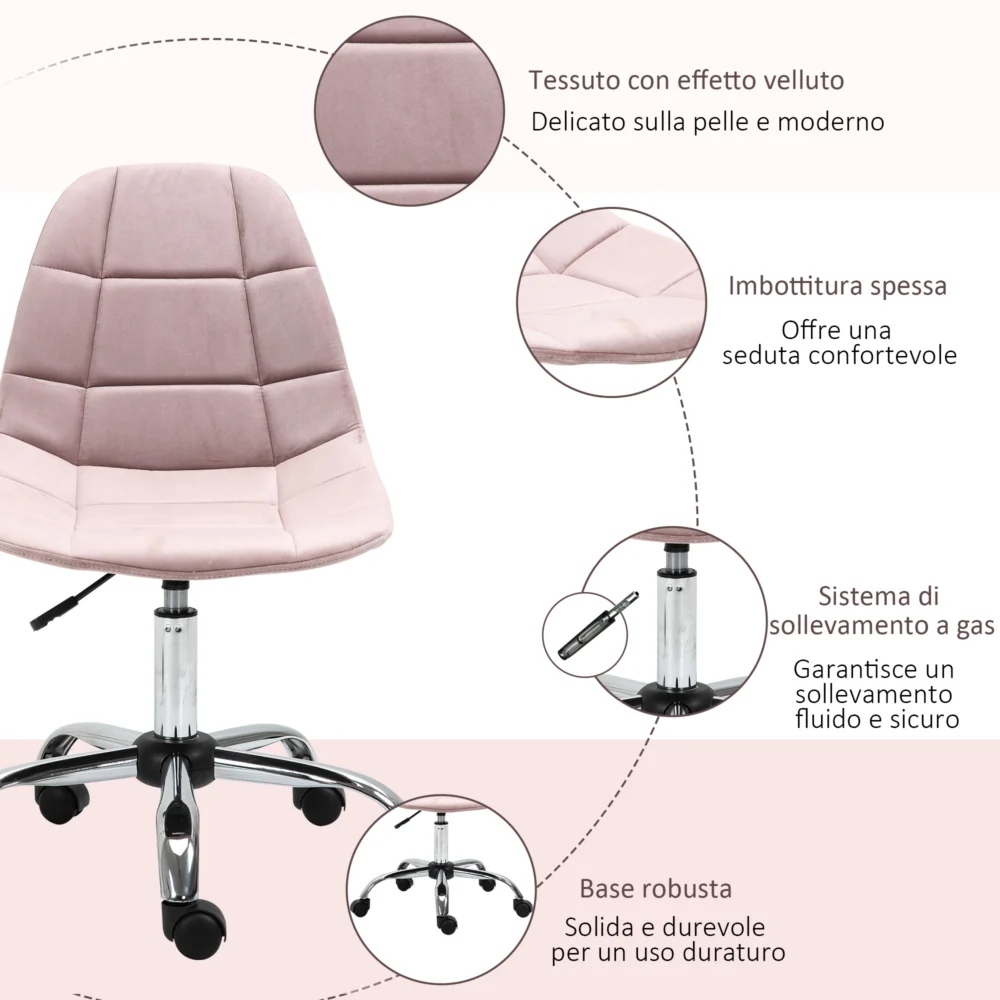 Περιστρεφόμενη καρέκλα Vinsetto για εργονομικό ρυθμιζόμενο γραφείο γραφείου Ροζ 921-366PK