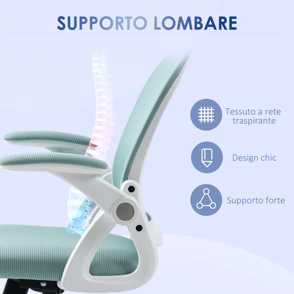 Εργονομική καρέκλα γραφείου με διχτυωτή πλάτη και ρυθμιζόμενο ύψος, 65,5×61,5×88-97,5cm, γαλάζιο 921-511V01BU