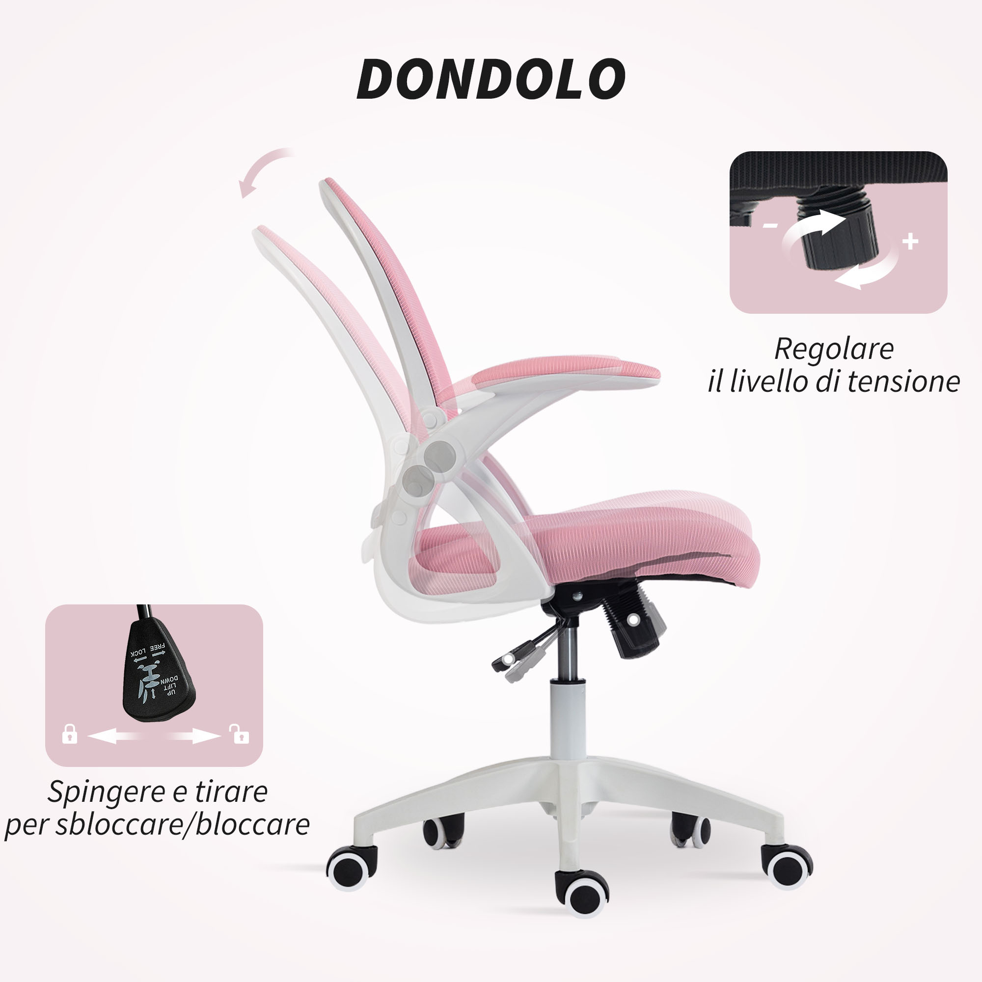 Vinsetto Εργονομική και Ρυθμιζόμενη Καρέκλα Γραφείου με Διχτυωτή Πλάτη και Μαξιλαρωτό Κάθισμα, 65.5×61.5×88-97.5 εκ., Ροζ 921-511V01PK