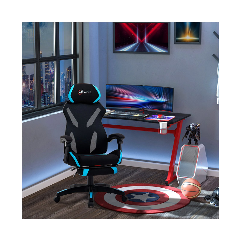 Η καρέκλα gaming, από την εταιρία Vinsetto, διαθέτει επιφάνεια από αναπνεύσιμο ύφασμα πολυεστέρα και κάθισμα με γέμιση σφουγγαριού, προσφέροντας άνεση ακόμα και για πολλές ώρες παιχνιδιού. Διαθέτει συρόμενο υποπόδιο για μεγαλύτερη άνεση.