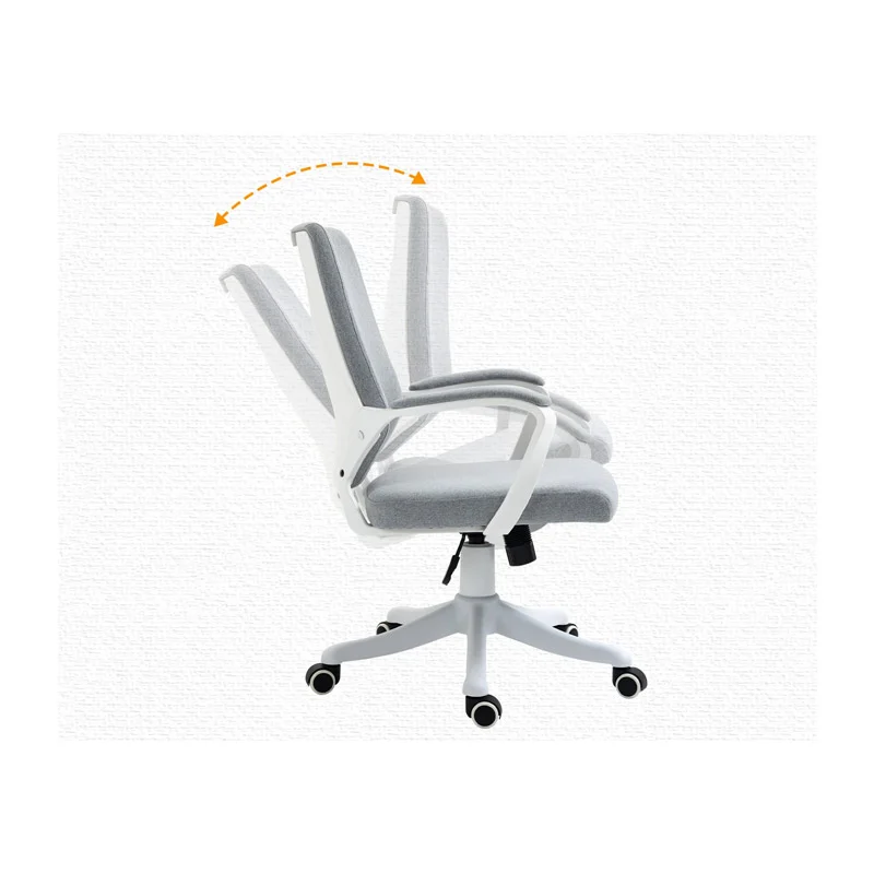 Διαθέτει επιφάνεια από λινό ύφασμα και στρώμα σφουγγαριού, το οποίο αυξάνει σημαντικά την άνεση της χρήσης. Ο εργονομικός σχεδιασμός της και η ψηλή της πλάτη με την ανθεκτική της πλαστική υποστήριξη, εγγυώνται τη λειτουργικότητα της και την σωστή υποστήριξη του σώματος. Τα υποβραχιόνια είναι επενδεδυμένα και έχουν σωστό σχήμα, γεγονός που μειώνει τον πόνο των αγκώνων καθώς και το φορτίο στη σπονδυλική στήλη. Έχει ρυθμιζόμενο ύψος καθίσματος, μηχανισμό λικνίσματος και δυνατότητα περιστροφής.