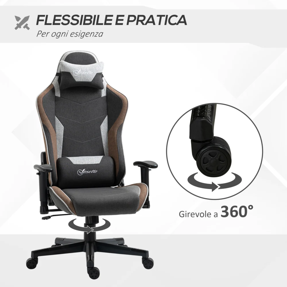 Ανακλινόμενη καρέκλα παιχνιδιών Vinsetto 150° με λειτουργία λικνίσματος, προσκέφαλο και οσφυϊκό μαξιλάρι, γκρι 921-566